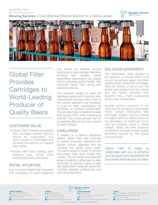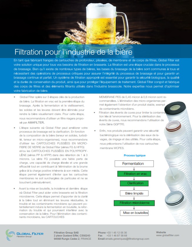 Téléchargez la documentation sur la bière ci-dessous pour plus d’informations sur nos solutions de filtration.